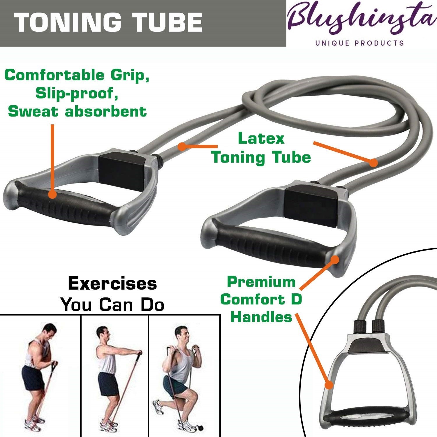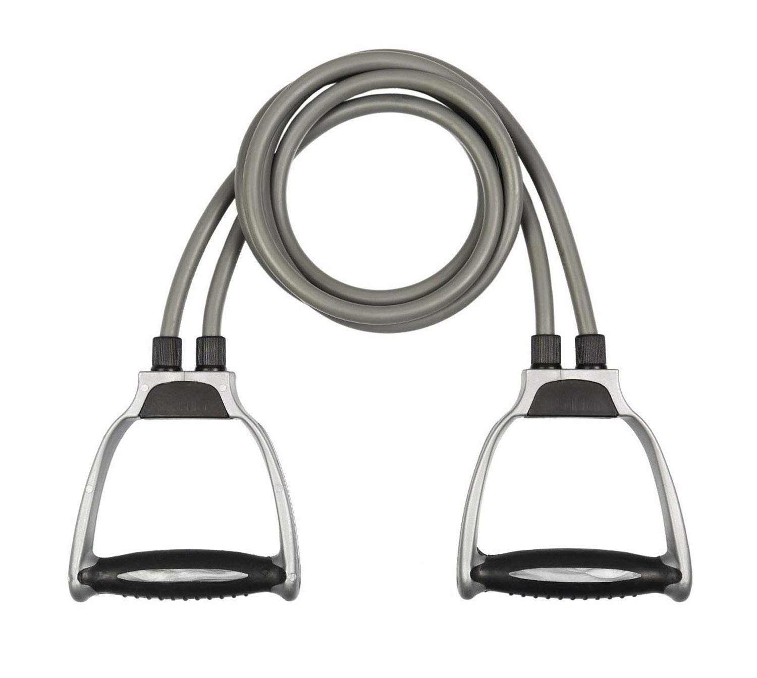 Adaptable for Multiple Fitness Levels Used with Familiar Exercises Double Toning tube is specifically designed to challenge your core muscles. Adaptable for multiple fitness levels, whether you’re a beginner or an expert, resistance bands are for you. They come in a variety of resistances, including medium and heavy, and you can further adjust the intensity of your toning tube workouts by giving the toning tube more or less slack. You can often use familiar strength training moves with this double toning tube ADJUSTABLE LENGTH Resistance bands and tubes are made of strong, thin rubber with handles at the end, and come in a variety of resistances depending on your fitness level. With resistance bands, you can do just about any type of strength training exercise – chest presses, rows, shoulder presses, triceps extensions, bicep curls, and even squats – without the need for heavy weights. Here are a few benefits of resistance tubes. Whether you’re just starting to incorporate fitness bands into your cross-training routine or are looking to add a few new bands into your current collection, single resistance bands offer the versatility and quality that you need for your workout. These bands are ideal for a wide variety of fitness-related uses, including physical therapy, weight loss, pilates, muscle toning, muscle strengthening, stretching, rehabilitation and general health and fitness. EXERCISES ! You Can Do These bands are compact and portable, so you can take your workout anywhere. Designed with soft and comfortable handles and durable resistance tubes, it tones and strengthens every muscle group. Save on storage space, toning tubes take up virtually no space to store them, which means you can use them at home even if you have very little extra space. When your workout is done, simply stash them in a drawer until your next session