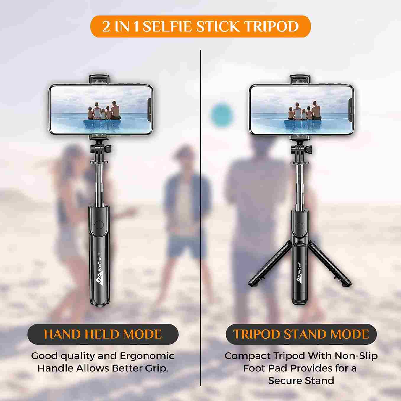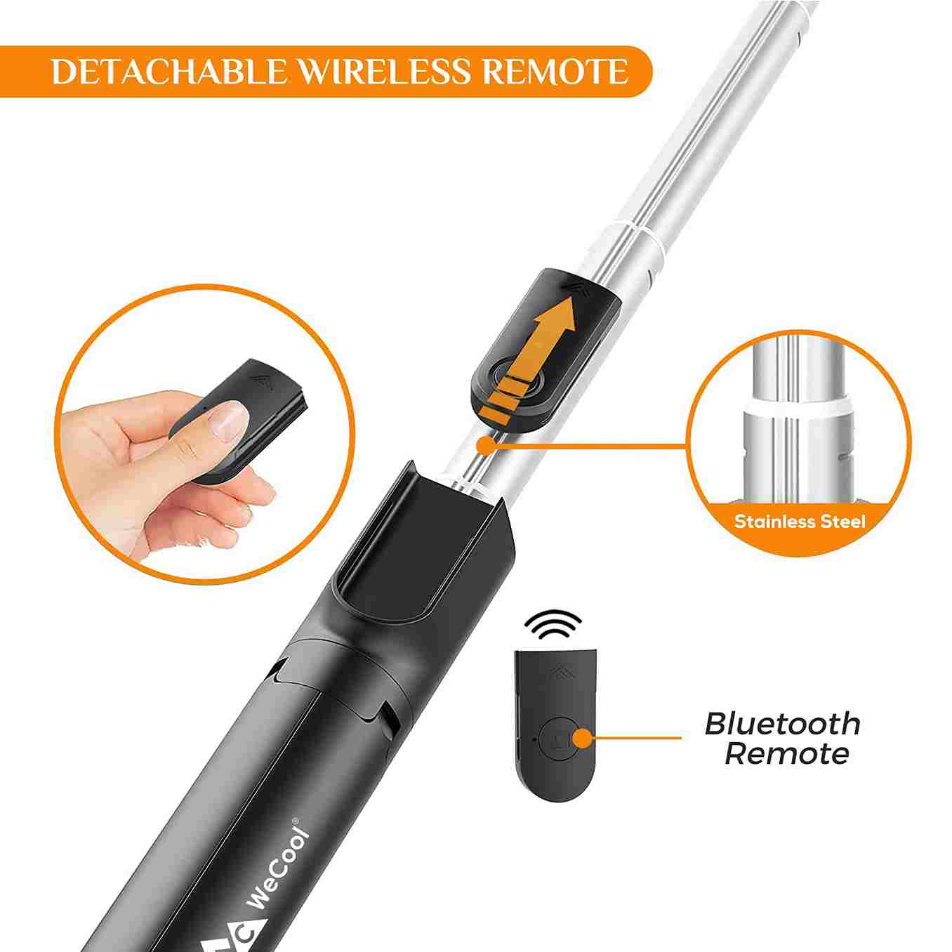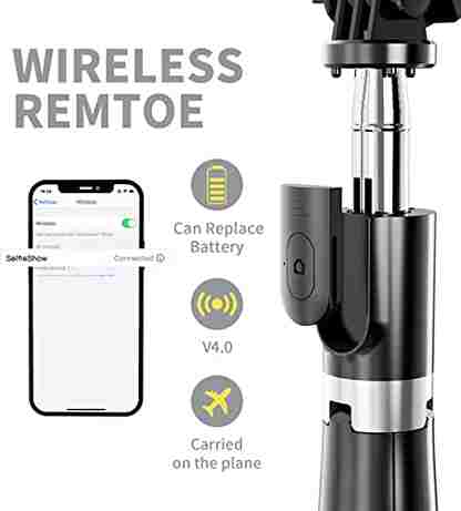 - Bluetooth Selfie Stick is provided with a tiny wireless remote that can be connected to your phone and can be used up to about 15 Ft