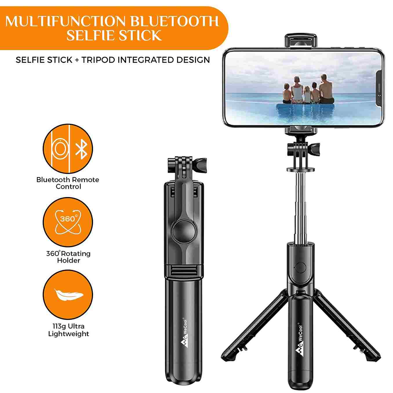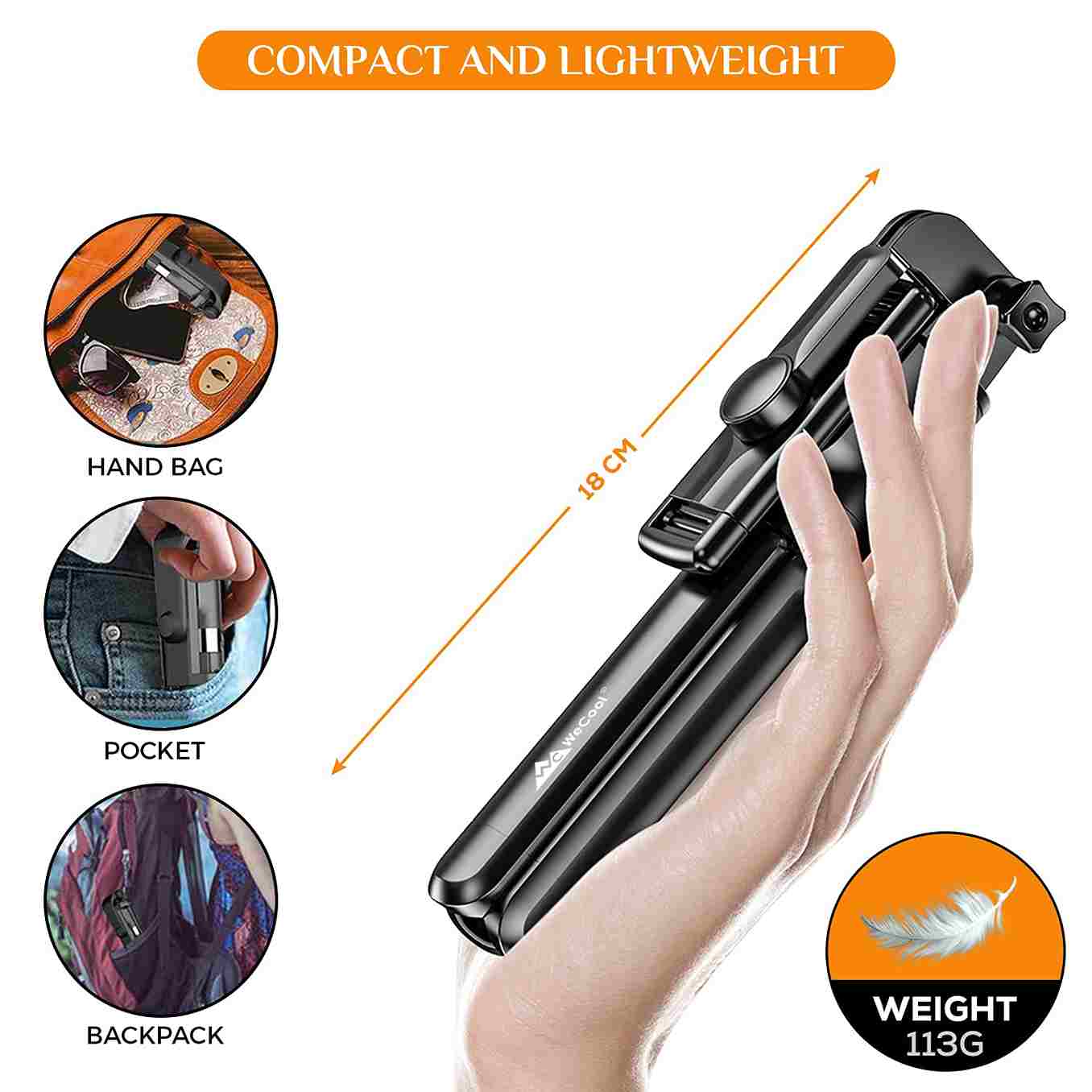 - Ultra Light Selfie Stick can be used to Take selfies or capture your favourite videos. This multifunction tripod with selfie stick weighs only 113 Grams.. Rubber Grip : No