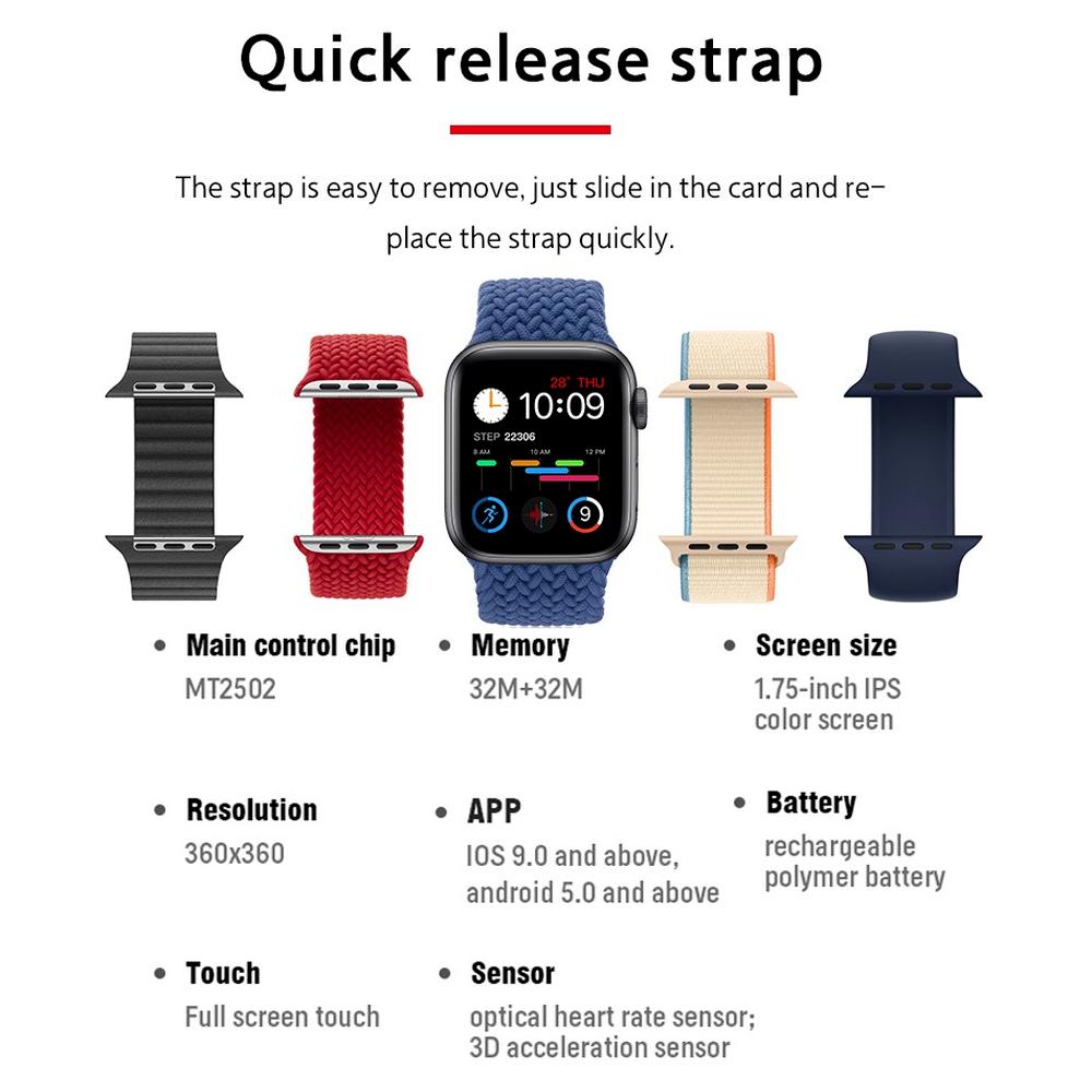 T500+ Pro, Touch Screen Smartwatch With Heart Rate Activity Tracker, Blood Pressure Detector